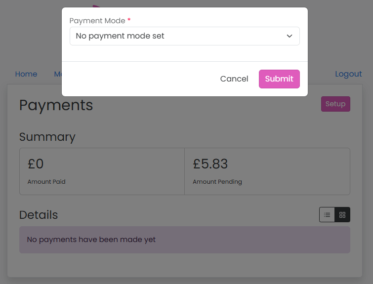 Setup payment