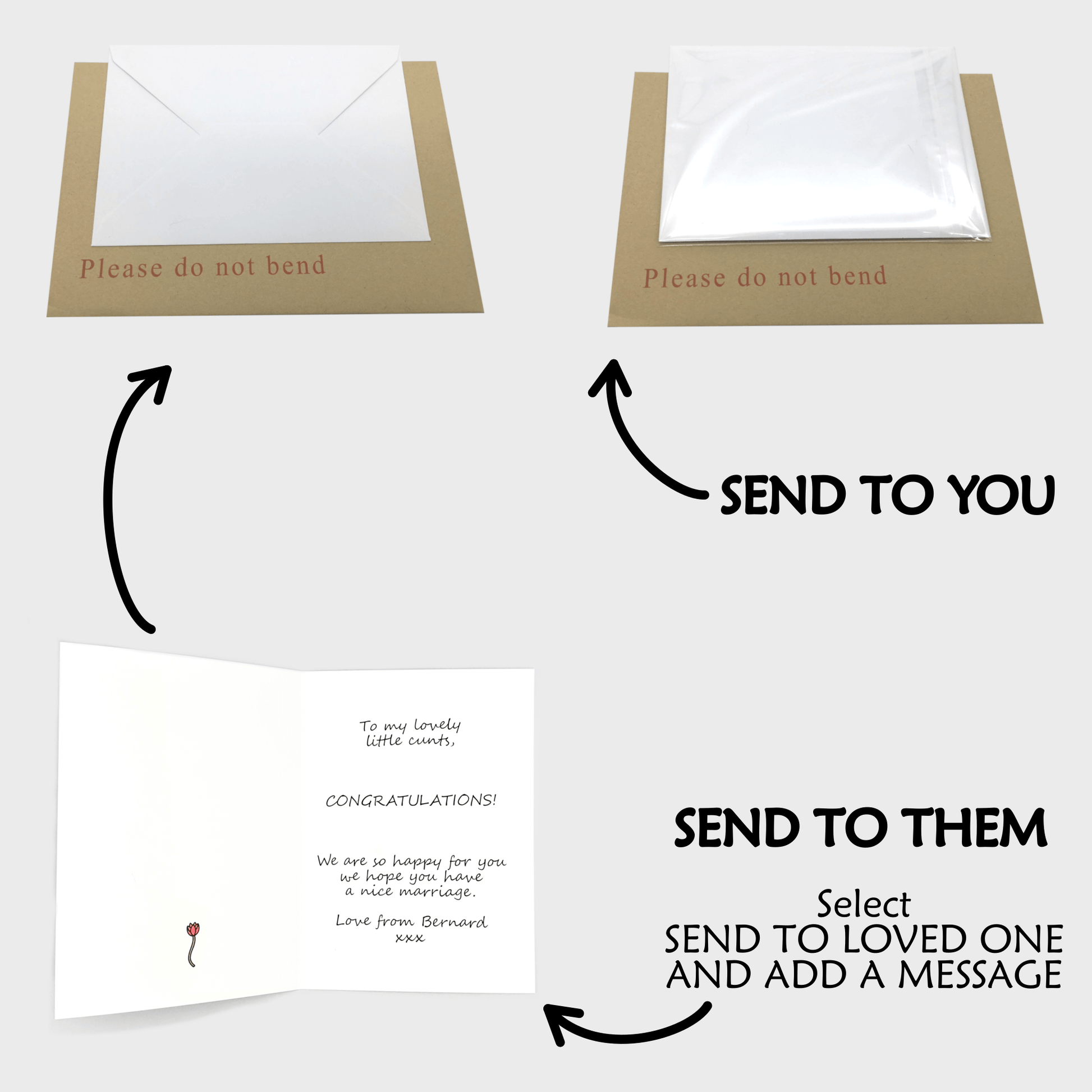 This card and envelope will be shipped to you in a cellophane wrap and a card-backed envelope to make sure it doesn't get bent or wet.